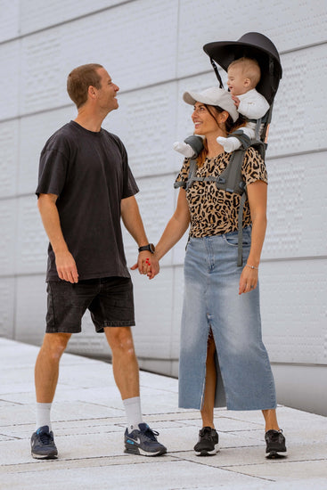 The weight of the child is evenly distributed through the carrier’s body, which enables longer walks in both comfort and style, with happy kids!